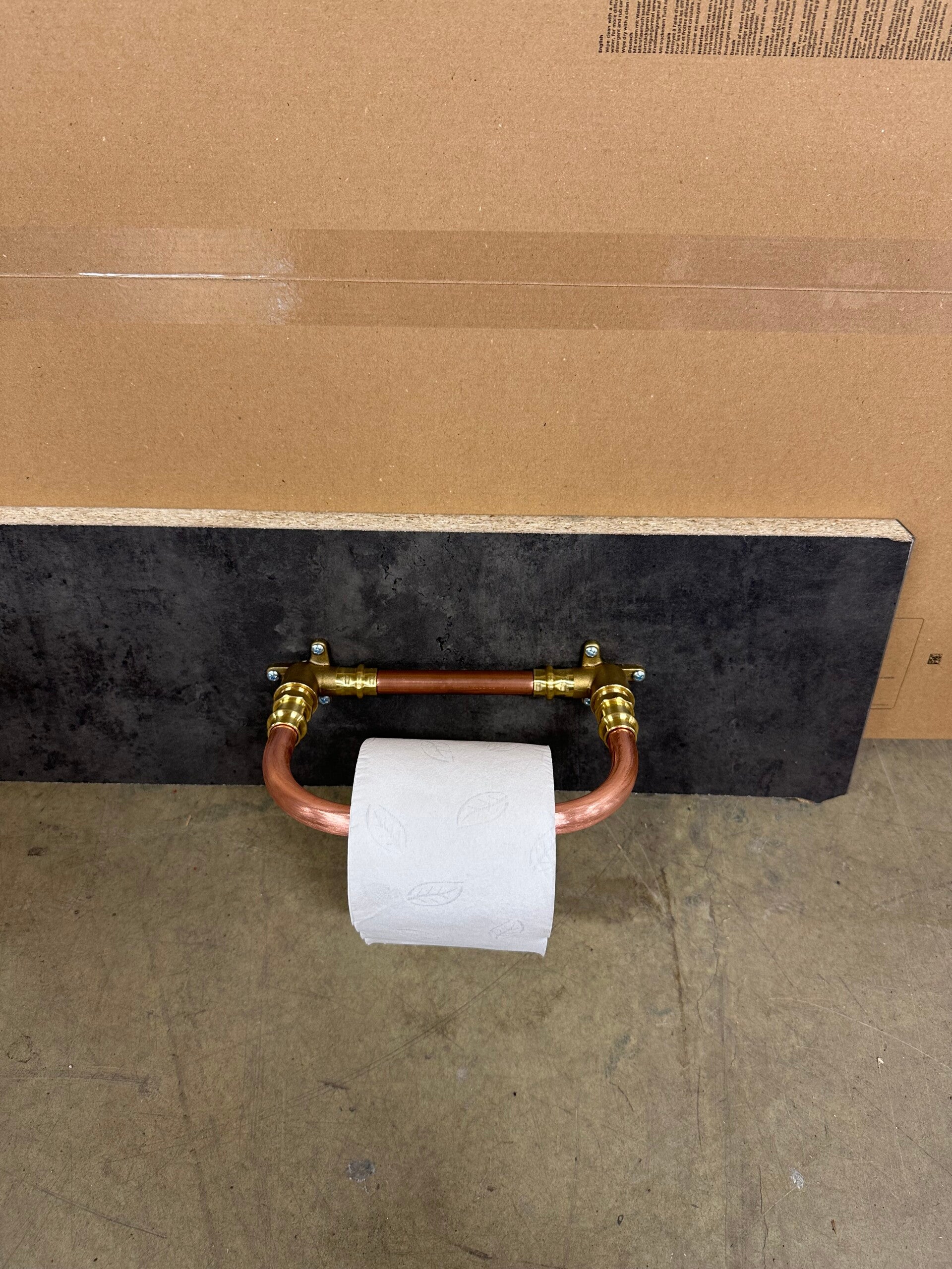 Toalettpapperhållare i 15 mm kopparrör. Bredd 25 cm djup 10 cm höjd 10 cm